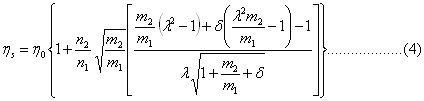 同时,从方程(4)中还可以得出,当 n2/n1=0时,即溶剂的粘度ηc为