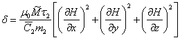 从方程(4)可以看出,δ依赖于磁场强度梯度,于是磁性流体粘度方程中,(1+δ)1/2就是磁场对磁性流体粘度的影响。从δ的计算方程中可以看出,如果磁场强度梯度是空间坐标的x、y和z函数,那么磁性流体的粘度在空间每一点上均发生变化。如果下列三式均成立,
