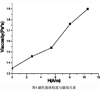 ②磁性流体在受到磁场作用时,由于磁性流体基载液和磁性微粒之间旋转速度差的增加,其粘度要大于未受到磁场作用时的粘度;同时,在磁性流体未达到饱和前,